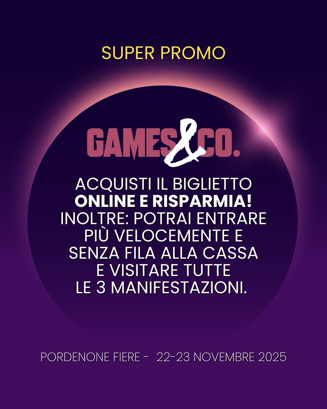 Un unico biglietto per visitare 3 manifestazioni: Games&Co. + Radioamatore 2 + Fotomercato. Tanti padiglioni accessibili con un unico ticket.